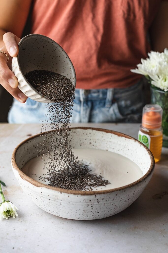 - Whisk in the chia seeds and stir to combine well.